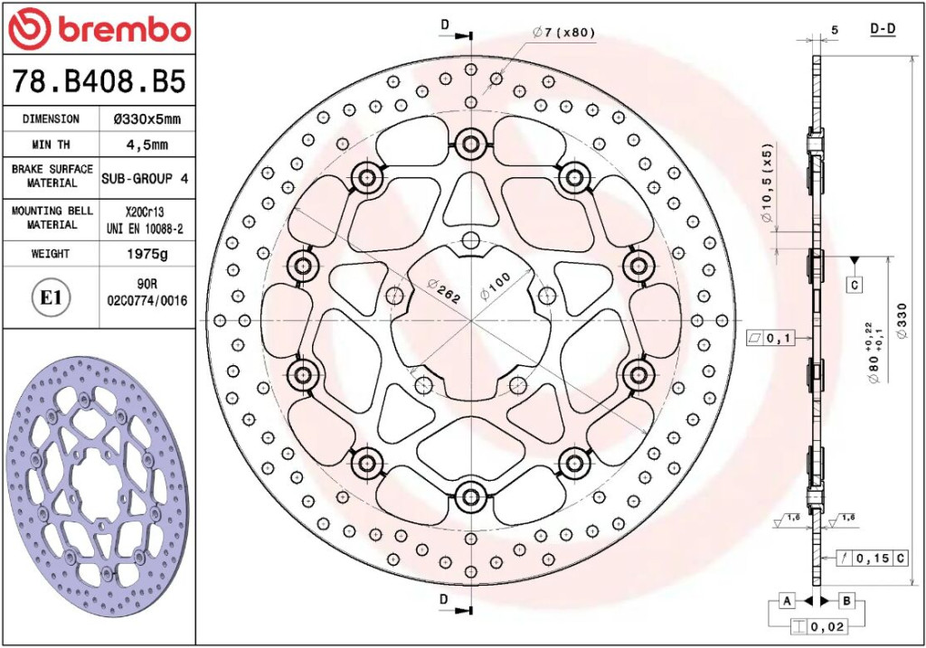 Disc frână Brembo flotant față 78B408B5