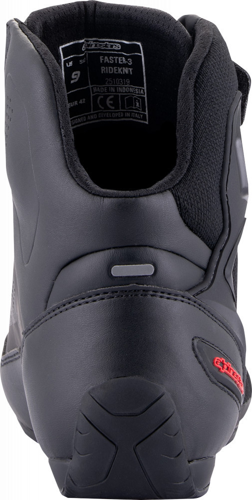 Dispunând de noi inovații de performanță adaptate după decenii de experiență în cercetare și dezvoltare la cel mai înalt nivel al sporturilor cu motor, pantofii Faster-3 încorporează  caracteristici de protecție de top, atât în ​​interior, cât și în exterior. Faster-3 Shoe este construit dintr-un șasiu ușor și durabil din microfibră și o plasă interioară care oferă confort, rezultând un pantof de curse rutier cu un stil agresiv, care oferă performanță, precizie, flexibilitate și integritate structurală.