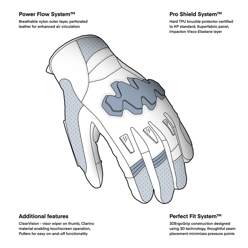 Rebelhorn Defender sunt manusi moto touring scurte cu protectie KP certificata, piele perforata si captuseala Cooler-Tec, oferind echilibrul perfect intre ventilatie, siguranta si confort in orice conditii de riding.