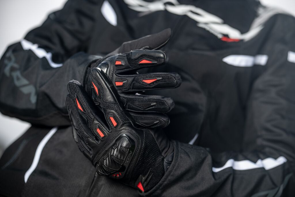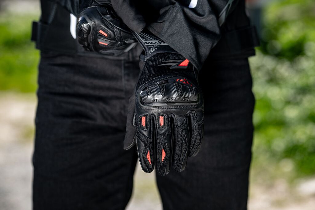 Manusi barbati Roadster vara piele/textil Ixon model Rise Air 2 MS culoare: negru/rosu - degete tactile ESENȚIAL: Flexibilitate, aderență și design elegant - cel mai bine vândut produs din gamă datorită confortului imediat și aspectului discret de curse. Descriere: • manusi vara; • culoare: negru/rosu; • impermeabilitate: nu; • izolație: nu; • material exterior: piele de capră și plasă; • palmă: piele de capră; • intăritură palmă: piele de capră. Caracteristici: • efecte materiale pe carcasă; • inchidere: neopren fără cusături, fixare cu velcro; • caracteristici practice: - deget arătător compatibil cu ecranele tactile; • carcasă pentru articulații cu aspect de carbon. Fit & Confort: • construcție preformată pentru a preveni oboseala mâinilor. Siguranta: • model certificat CE, nivel 1 KP, conform standardului EN 13594:2015.