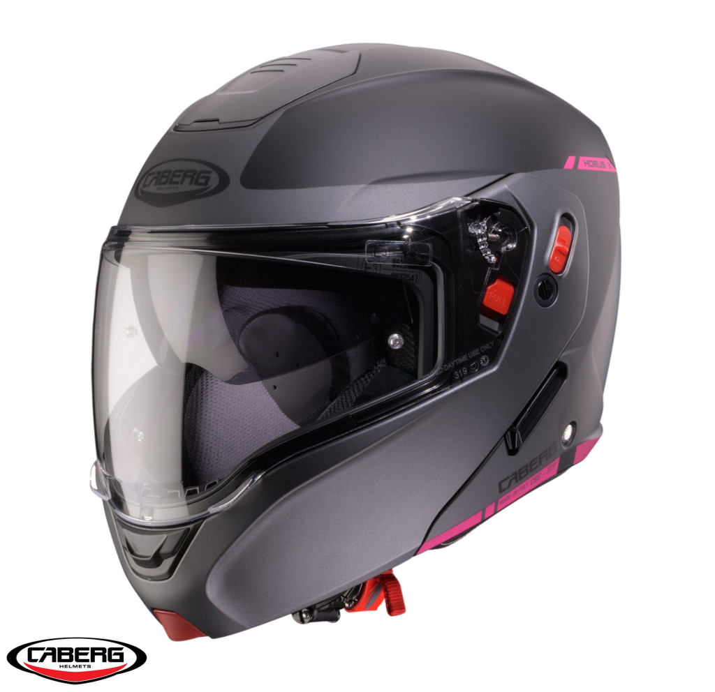 • Horus este un model de casca modulabila (flip-up) de la producatorul italian Caberg conceput pentru touring, precum si pentru utilizare urbana, gratie omologarii duble “P/J”, care permite folosirea in siguranta a castii cu mandibula ridicata (butonul comutat pe pozitia J), sau cu mandibula inchisa (butonul comutat pe pozitia P), fiind omologata pe nou standard de siguranta european ECE 22.06 P/J;